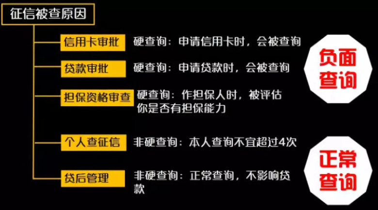 硬查詢原來是指這些!!猜測大家對于征信報告都不陌生。更具體的說,個人信用報告的查詢分為:本人查詢、信用卡審批、擔保資格審查、貸后管理、貸款審批、異議查詢等。